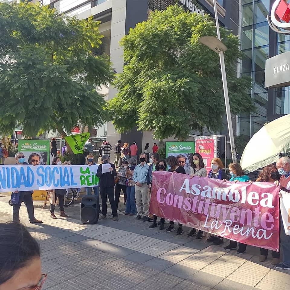 La Asamblea Constituyente de la Reina (ACCLR) recogiendo el sentir de los cabildos y organizaciones, realizó este lunes un acto público en Plaza Egaña de carácter ciudadano con las y los candidatos/as a constituyentes de las listas progresistas del D11, que se han manifestado por avanzar decididamente para dejar atrás el modelo de desarrollo neoliberal y la libertad de los presos políticos del estallido.