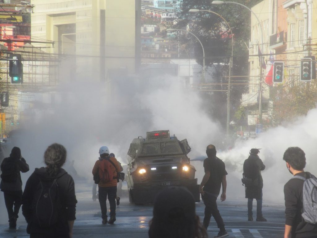 La movilización hacia el Congreso comenzó poco antes de las 15 horas, recorriendo las calles céntricas de Valparaíso, pero en las primeras cuadras de Avenida Pedro Montt se hizo presente un gran contingente de Fuerzas Especiales de Carabineros. Así, mientras Piñera se hablaba a sí mismo y a la clase política que lo acompañó al interior del Congreso Nacional respecto del respeto a los Derechos Humanos, en las calles se reprimía enérgicamente una marcha pacífica, lanzando agua y gases tóxicos en contra de las y los manifestantes.