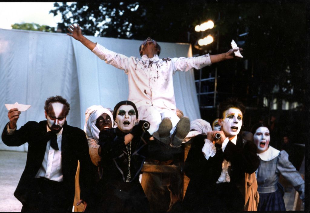 Hay momentos de gran intensidad y simbolismo en Alice Underground. Son años de una creación desatada, de una imaginación que toca referentes jamás vistos en la representación escénica. Una Alicia que se hunde en agujeros que llevan a fosas comunes, a dictadores y políticos soñadores, a un delirio político más agudo y perverso que la narración de Lewis Caroll.