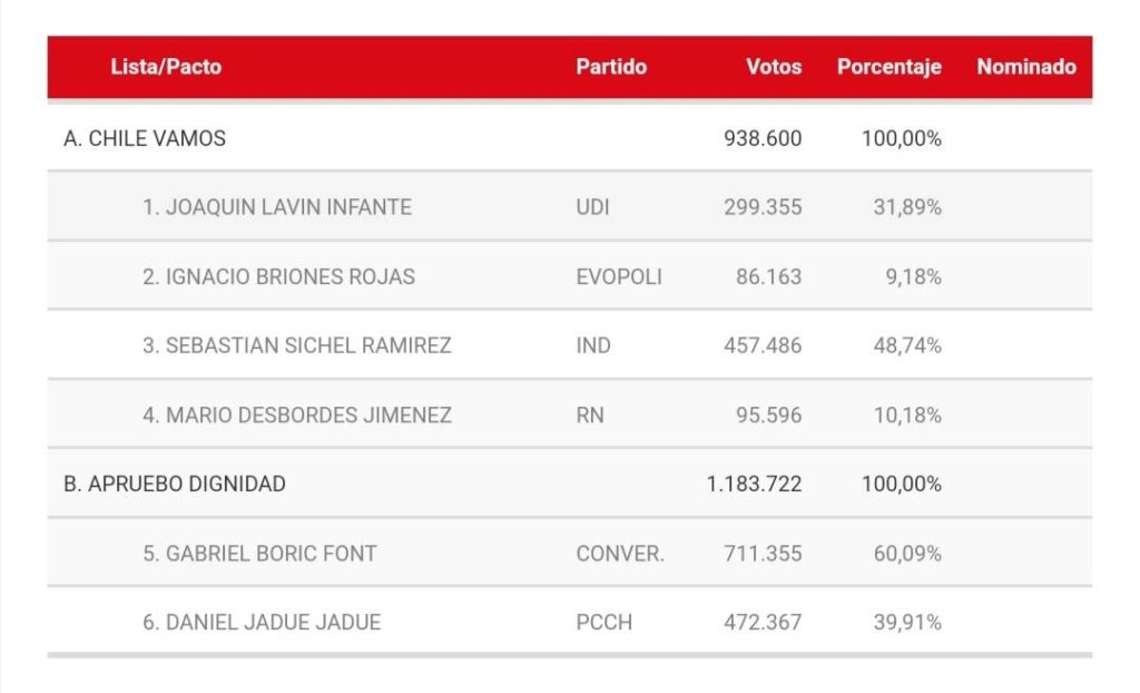 Boric y Sichel dan la gran sorpresa en las primarias y mantienen el suspenso hasta noviembre
