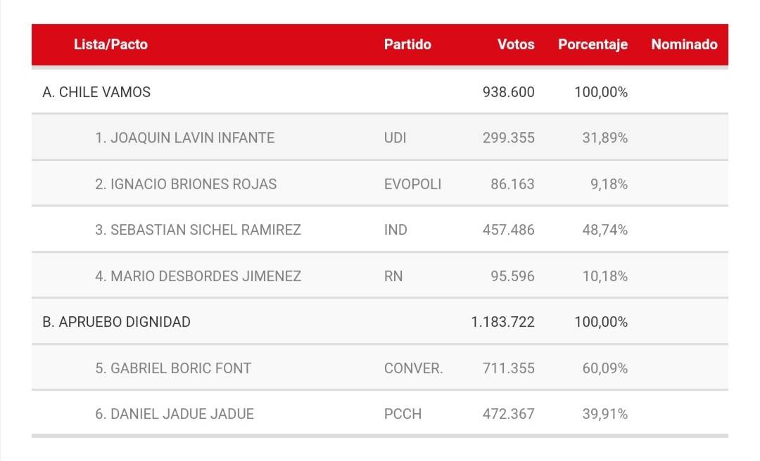 Gana el anti comunismo tradicional y la concertación-derecha con el Sr. Boric , su abanderado no oficial en esta votación.Punto.