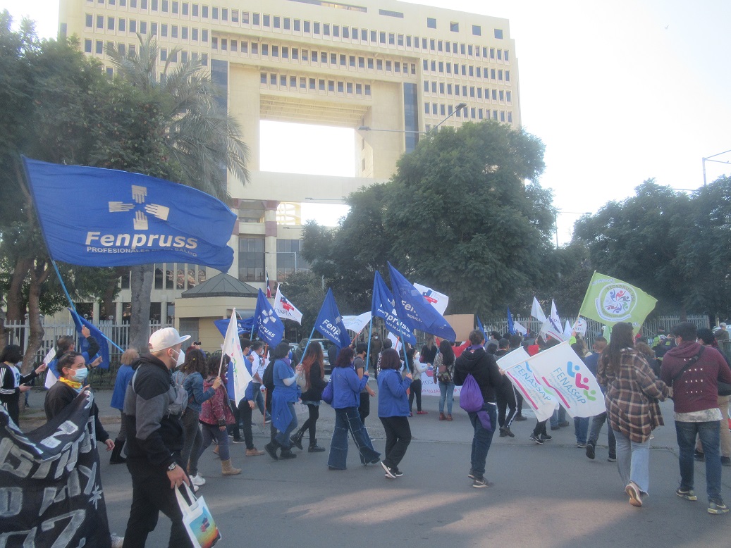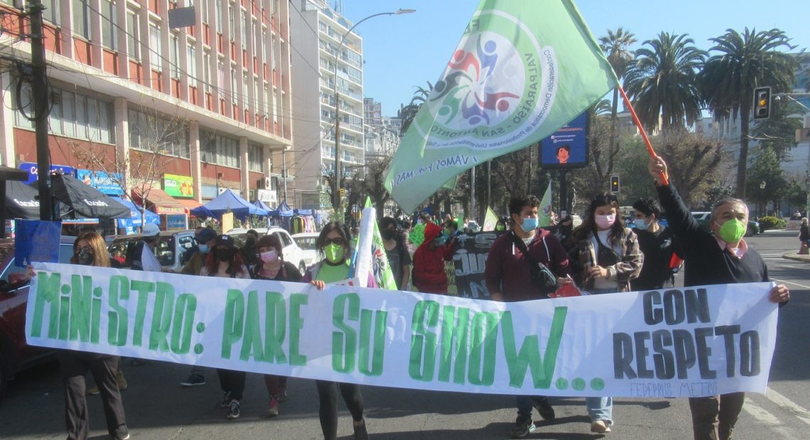 “Es importante decir que como dirigentes sindicales marchamos por las calles de Valparaíso, porque es nuestra responsabilidad, ya que somos representantes de miles y miles de trabajadores y trabajadoras de la salud. Interpelamos al Ministro París porque es el responsable principal de poder entregar una salud digna a la población y eso no ha sido así. Los que hoy marchamos aquí estamos representando la voz de hombres y mujeres que han sido vulnerados en sus derechos, trabajadores a honorarios a quienes se les han cancelado sus contratos. Como dirigentes sindicales, por denunciar estos abusos, hemos estado expuesto a sumarios políticos queriendo callar la voz de quienes hemos alzado la denuncia por las negligencias, por la vulneración de derechos que han tenido los y las trabajadoras”