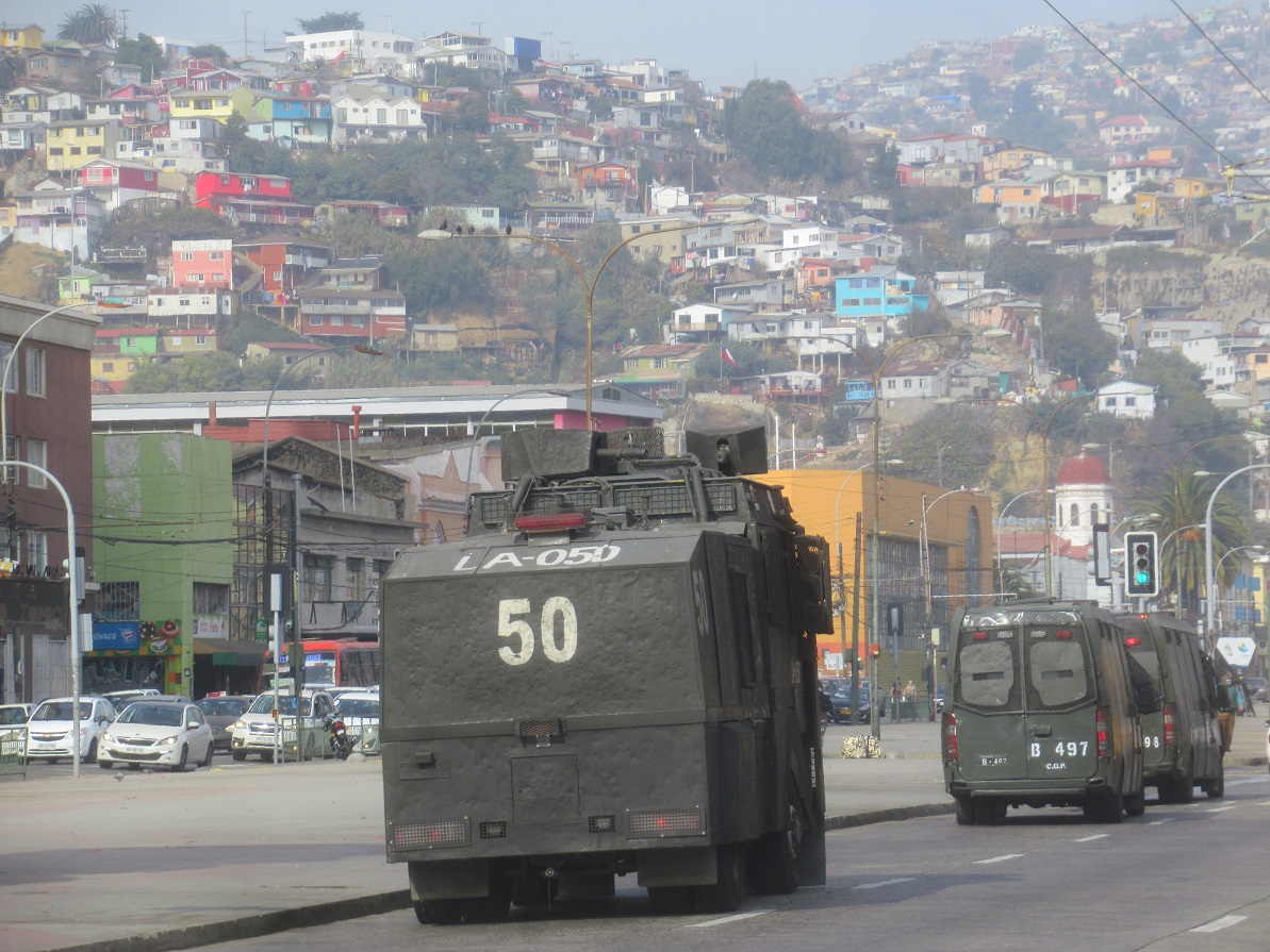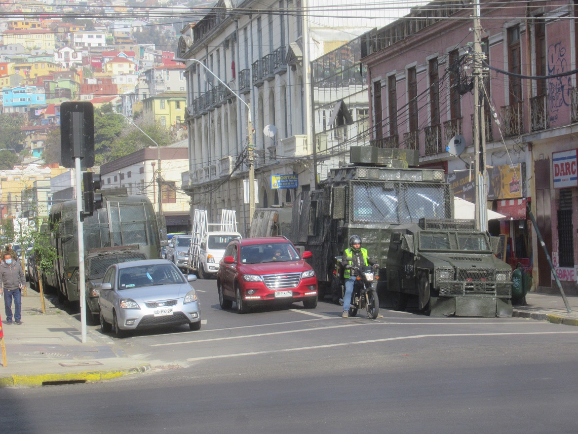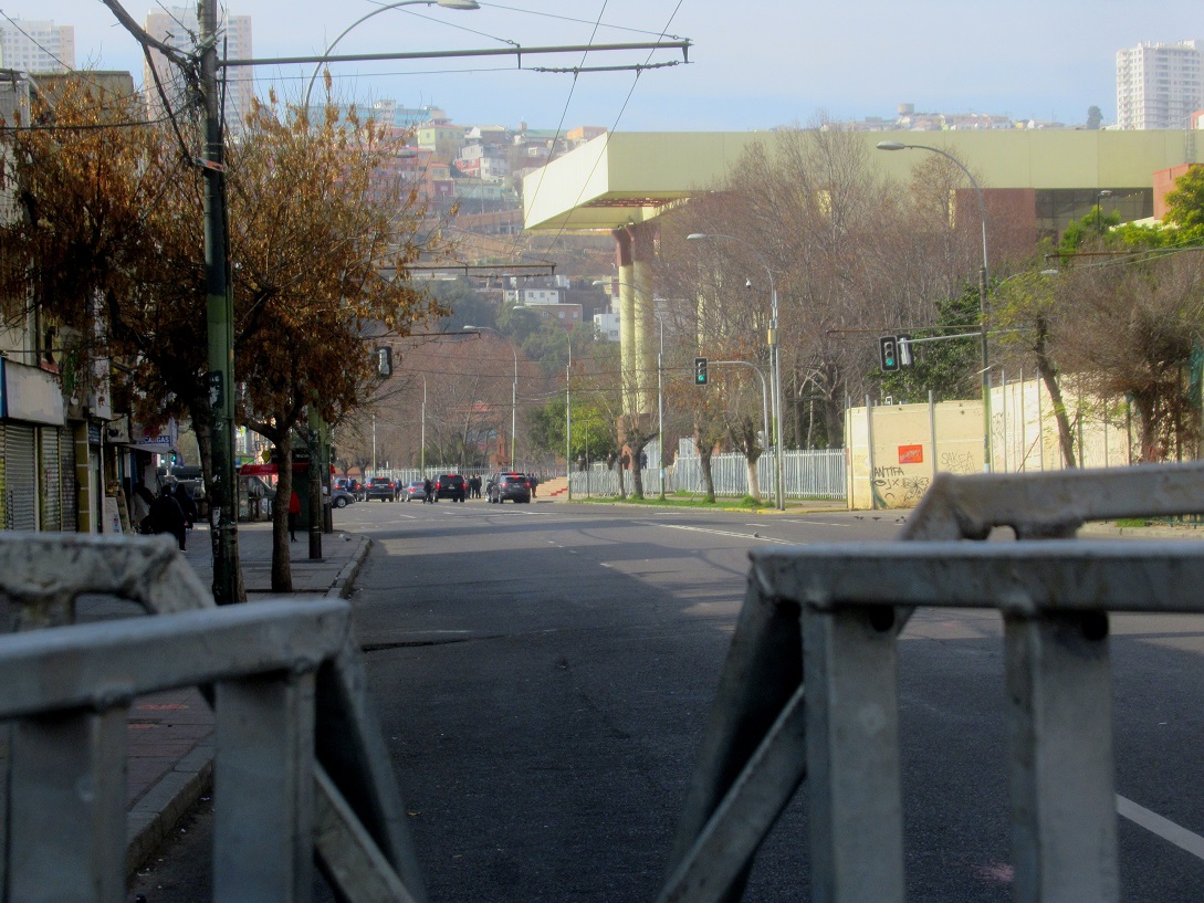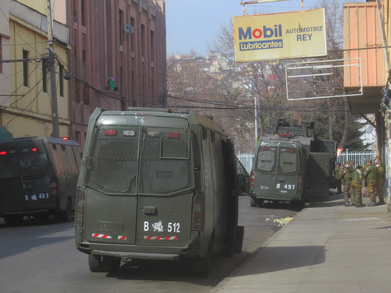 Una vez más Valparaíso amaneció enrejado y sitiado con la presencia de un gran contingente de vehículos y fuerzas represivas que se desplegaron en diferentes sectores de la ciudad y a lo largo de la Avenida España, principal vía que une Viña del Mar con Valparaíso, aún cuando ni siquiera había algún llamado a realizar movilizaciones hoy en la ciudad Puerto.