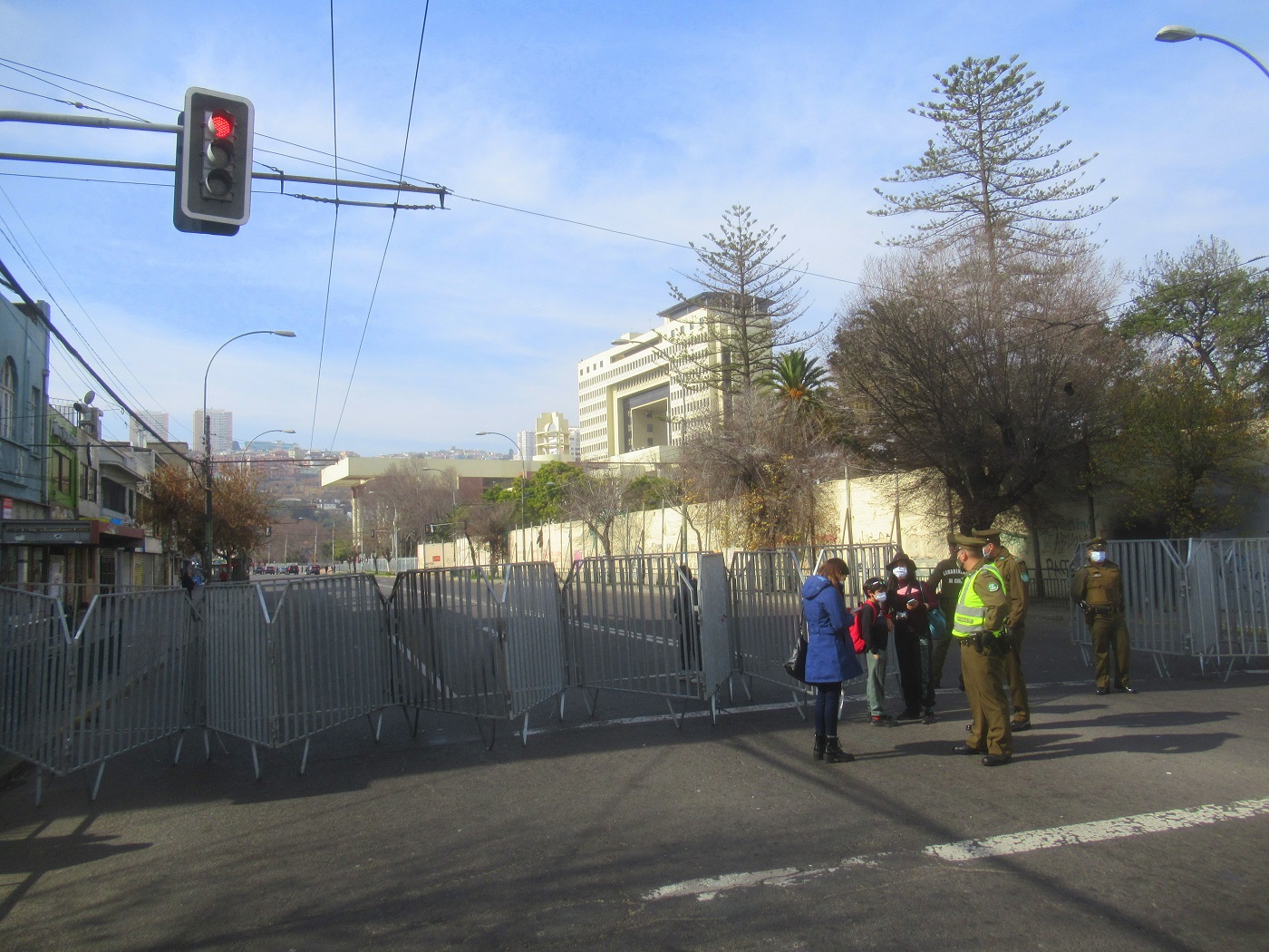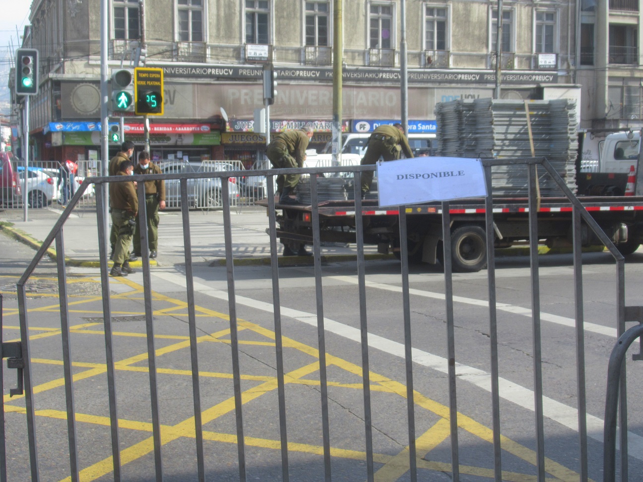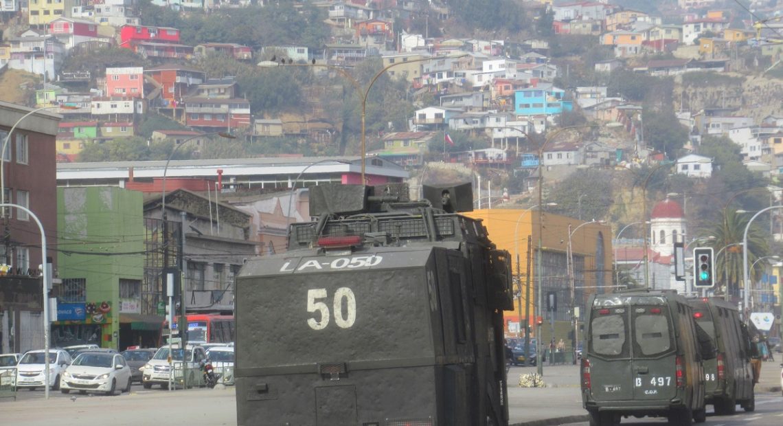 Una vez más Valparaíso amaneció enrejado y sitiado con la presencia de un gran contingente de vehículos y fuerzas represivas que se desplegaron en diferentes sectores de la ciudad y a lo largo de la Avenida España, principal vía que une Viña del Mar con Valparaíso, aún cuando ni siquiera había algún llamado a realizar movilizaciones hoy en la ciudad Puerto.