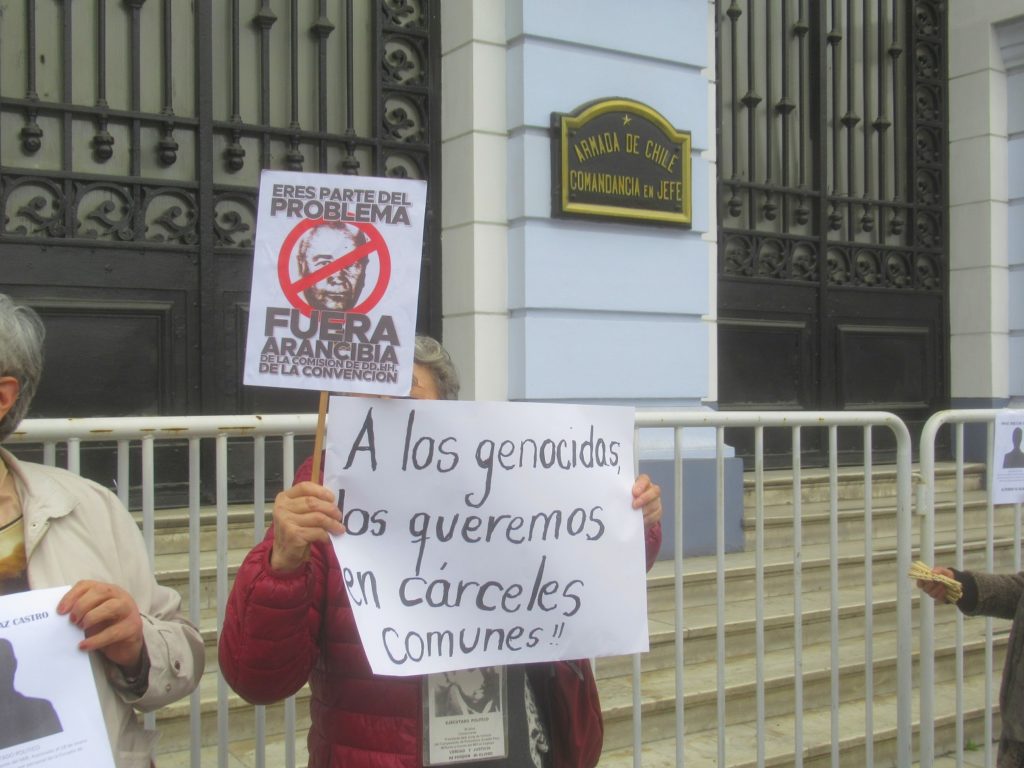 Diversas organizaciones de Derechos Humanos de la región de Valparaíso realizaron hoy martes 03 de agosto una acción de protesta para manifestar su indignación por el nombramiento de Jorge Arancibia, ex Comandante en Jefe de la Armada, como integrante de la Comisión de Derechos Humanos de la Convención Constitucional.
