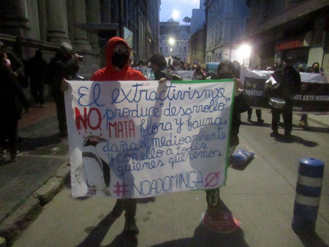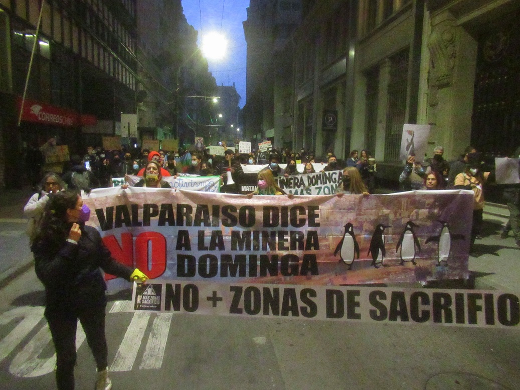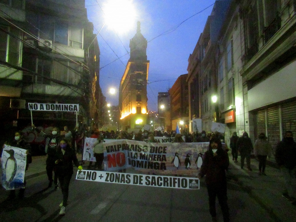 Centenares de porteñas y porteños marcharon el viernes 14 de agosto por las calles de Valparaíso, desplazándose desde la Plaza Sotomayor hasta el Congreso Nacional, para manifestar su enérgico repudio al proyecto minero y portuario “Dominga”, el que fue aprobado el pasado miércoles 11 de agosto por la Comisión Ambiental de Coquimbo, donde participan los Seremis, que son representantes directos del Presidente Piñera, haciéndose evidente de esta manera las presiones gubernamentales para impulsar este proyecto, lo que concuerda con la defensa y el impulso del modelo extractivista y depredador del medio ambiente que se ha instalado en Chile bajo el sistema de explotación capitalista en su expresión neoliberal, que no respeta los ecosistemas, la biodiversidad ni la vida.