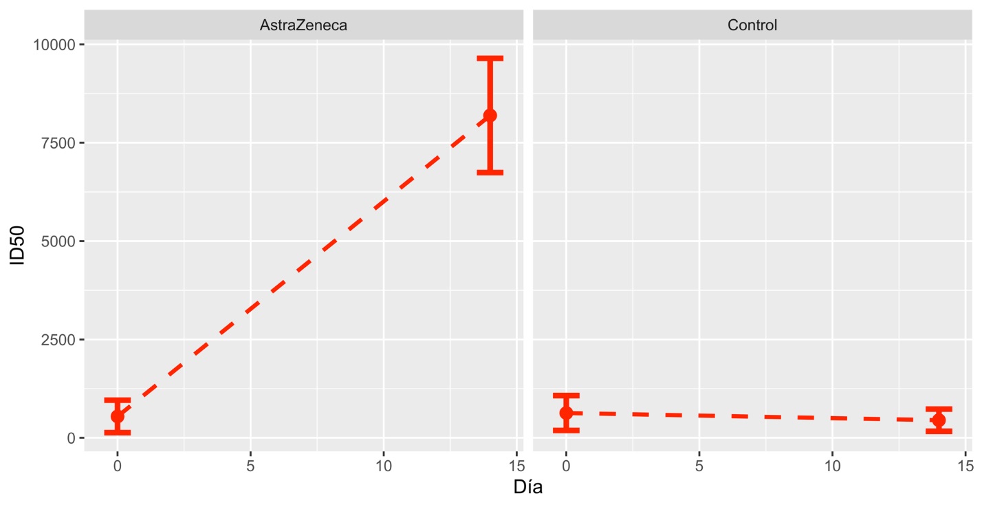 “Tenemos los primeros resultados del estudio de un total de 127 personas mayores de 55 años (edad promedio 77 años) que recibieron la vacuna de AstraZeneca donde observamos que los títulos de anticuerpos neutralizantes aumentaron 15 veces con respecto a la medición basal (de 544 a 8.194) en los primeros 15 días después de las dosis de refuerzo. En este estudio haremos seguimiento también a los 30, 60 y 90 días”.