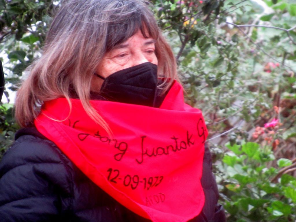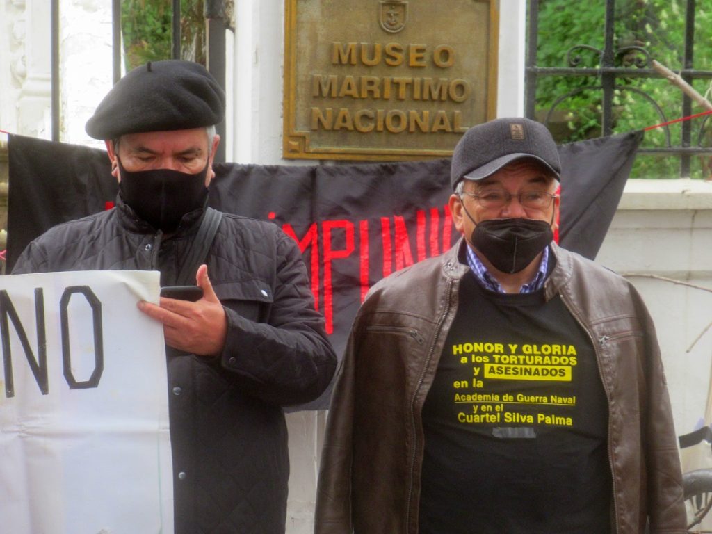 “Nosotros tenemos que seguir levantando estos frentes de batalla por la justicia, por la verdad y contra la impunidad y esta acción que realizamos acá en el Paseo 21 de Mayo es de absoluta necesidad, ya que sirve para seguir educando a las nuevas generaciones que este no es un lugar más, un museo cualquiera, este recinto fue un centro de prisión, de tortura y de vejaciones. Hoy podemos ver curiosamente numerosos barcos de guerra de la Marina que están a la gira. Este mismo ejercicio sucedió en septiembre de 1973, con la diferencia que estaban apuntando con sus cañones hacia los cerros porteños. En el molo que está allá al frente, el 73, atracó un barco mercante, el Maipo, cedido por la Compañía Sudamericana de Vapores, y no solo ese barco, también entregaron a la Armada los barcos Andalién y Lebu, que sirvieron de prisiones flotantes, lo que grafica la participación de los civiles en el complot contra el gobierno del pueblo de Salvador Allende, situación que también se dio en Colliguay, donde la familia Matte Larraín, de la Compañía Manufacturera de Pápeles y Cartones, cedió un terreno de su propiedad para que se instalara un campo de concentración llamado Isla Riesco. Todo este ejercicio de memoria histórica no lo abandonaremos y seguiremos con nuestra lucha.”
