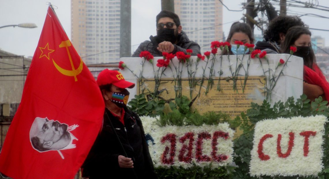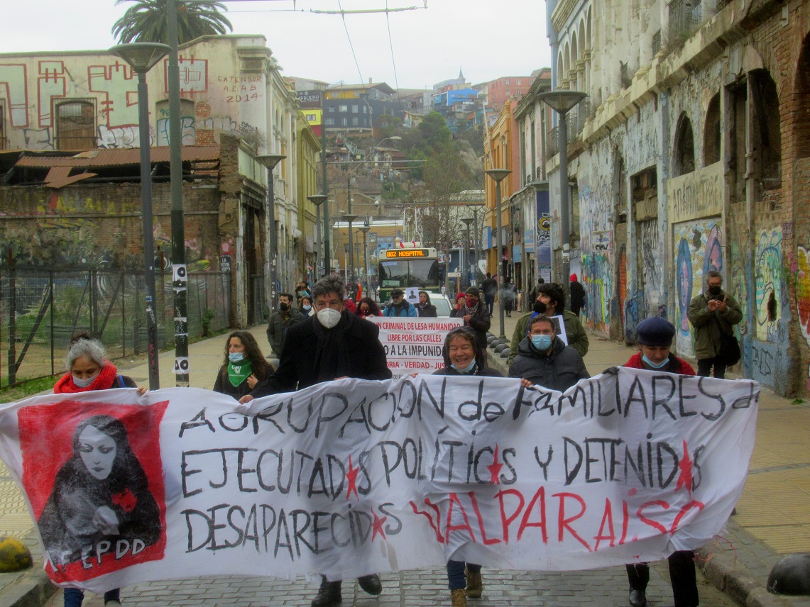Posteriormente las manifestantes y los manifestantes marcharon desde el Paseo 21 de Mayo, bajando al plan de Valparaíso, para desplazarse primero hasta la Plaza Aníbal Pinto y continuar luego hasta la Plaza del Pueblo Salvador Allende, donde se encontraban reunidas otras organizaciones de derechos humanos, sociales, sindicales y políticas, rindiendo un merecido homenaje al compañero presidente Salvador Allende, un mandatario elegido democráticamente por el pueblo chileno que no dudo ni un instante en oponerse resuelta y valientemente al golpe de Estado y empuñando un fusil junto a los compañeros del GAP resistió hasta la muerte en el Palacio de La Moneda, hace 48 años atrás.