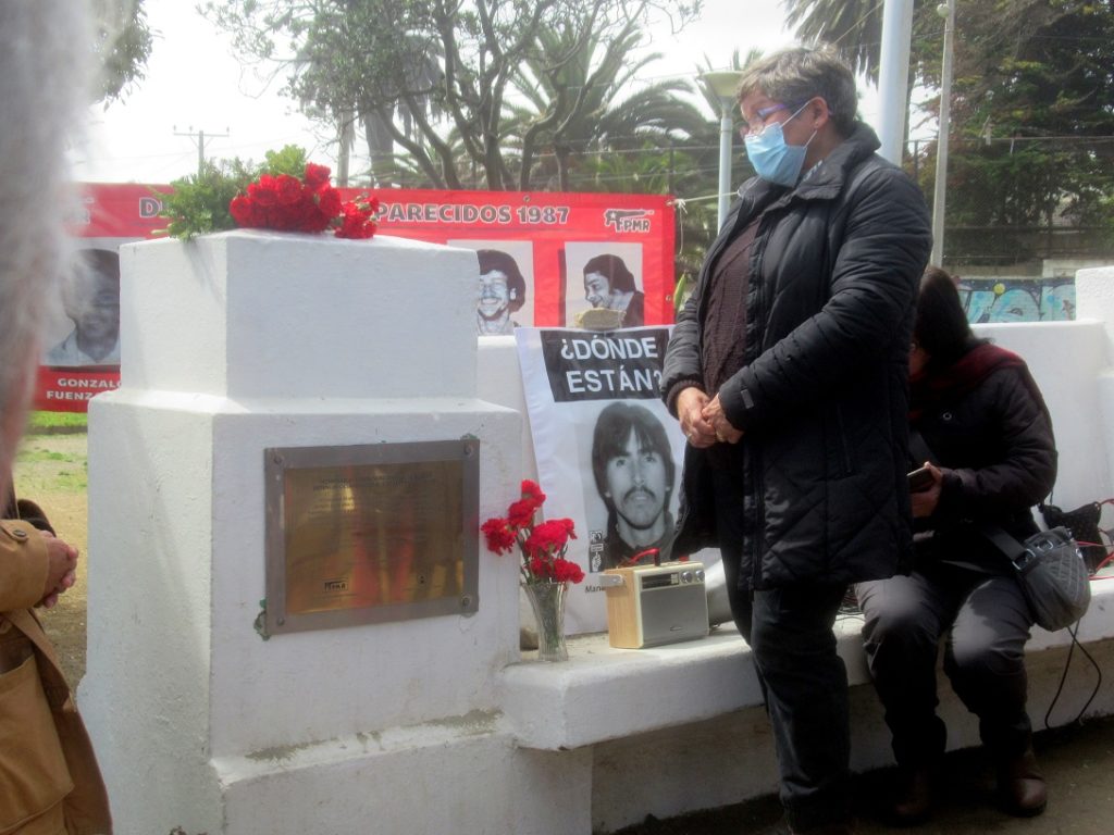 A nombre de la Comisión Chilena de Derechos humanos hizo uso de la palabra Alicia Zúñiga, quien además integra el Concejo Municipal de Valparaíso, para expresar que “es un honor estar presente acá y quiero saludar a todos los compañeros y en especial a las compañeras familiares de Detenidos Desaparecidos que se encuentran hoy presentes en este acto de homenaje y memoria. Este es un acto para los cinco compañeros desaparecidos en septiembre de 1987 y quiero brindarle un gran abrazo a Verónica, puesto que este acto tiene un particular significado emotivo para ella y su familia. En ese sentido el estar acá haciendo este acto es un homenaje a nuestros compañeros en las diversas dimensiones que alcanzaron en sus vidas, hombres jóvenes llenos de fuerza, de todo ese ímpetu que los llevó a actuar sin vacilaciones en contra de la dictadura.”
