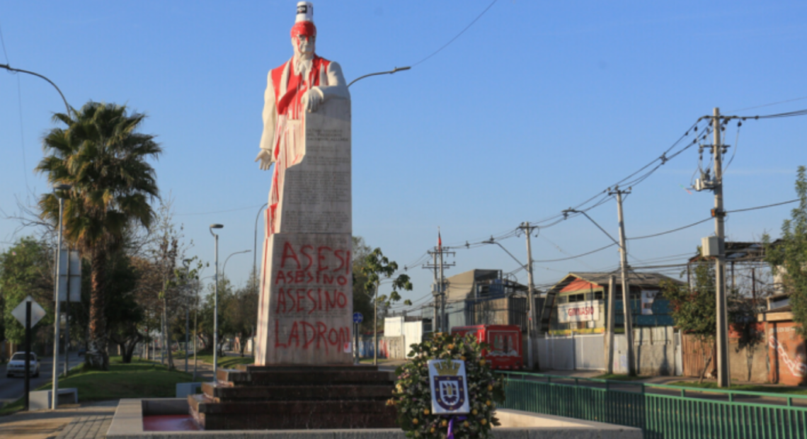 El ataque ocurrió durante esta madrugada, cuando al menos tres personas, provistos de escaleras, cubrieron la estructura con pintura roja y rayados. Además, fueron destruidos los arreglos florales depositados recientemente en homenaje al exmandatario.
