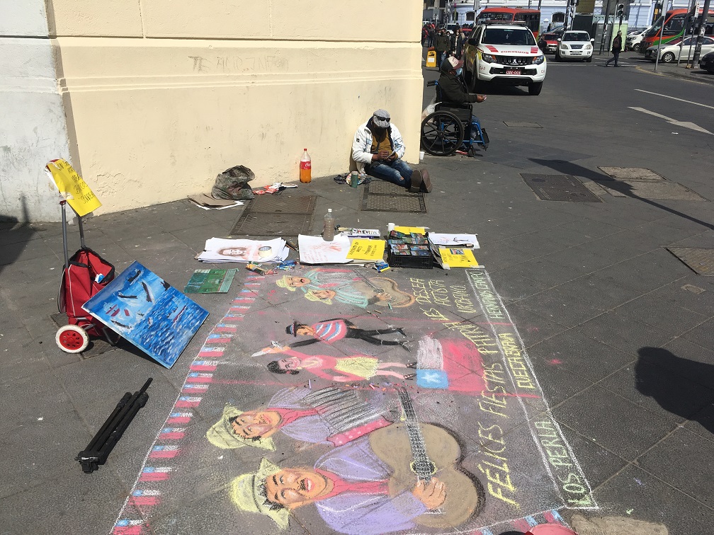 Siempre que camino por el sector de Plaza Sotomayor me acerco hasta el lugar donde se coloca Kazán para saludarlo, conversar un poco y observar sus nuevas creaciones, ya que estas son muy “efímeras y todas los día que vengo dibujo algo nuevo con la explicación para que la gente que pasa por aquí también se instruya un poco”, me dice. En esta ocasión nuevamente el tema de su dibujo era el baile de la cueca.