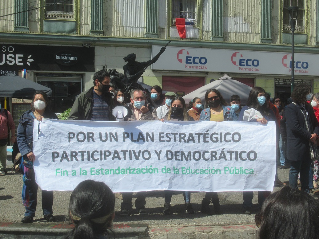 “Estamos acá en representación del Directorio Nacional para expresar nuestra solidaridad, nuestro apoyo absoluto y total a la movilización que hoy día están emprendiendo como trabajadores, como trabajadoras, en estricto rigor como comunidades escolares. Estamos acá para sumarnos a esa denuncia en el sentido de que lo que ocurre hoy en Valparaíso no es casual, no es azaroso, no es un problema exclusivo de Valparaíso. Estamos enfrentando la aplicación de una política sistemática, nacional, que busca precisamente profundizar un enfoque neoliberal, un enfoque de mercado en educación, que se expresa en poner por encima de los criterios pedagógicos la mirada económica.