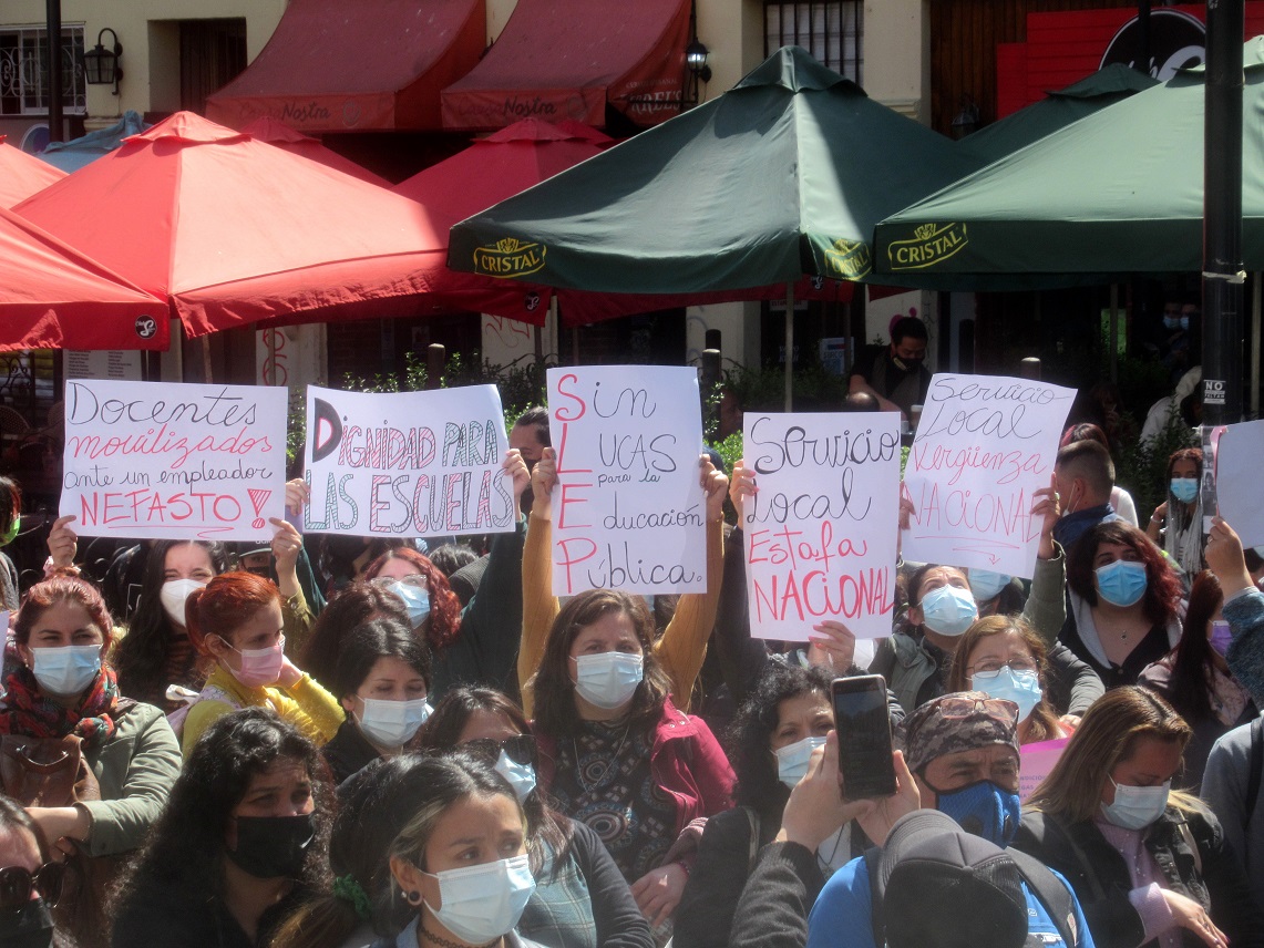 Ese mundo, ese mundo que la Revuelta popular de Octubre del 2019 echó abajo, hoy día se aferran a mantenerlo vigente cuando no tiene nada de legitimidad. Los profesores y las profesoras hemos decidido en la Asamblea Nacional de hace un par de meses atrás una posición política bien clara al respecto, hemos dicho que estamos por detener y frenar el proceso de implementación de los Servicios Locales de Educación. Hemos dicho que esta ley no va en la lógica de reconstruir y fortalecer la educación pública. Esto solamente está profundizando la crisis de la educación pública en nuestro país y hoy la historia nos da la razón, hoy lo que ha ocurrido acá en Valparaíso nos da la razón, con el agravante que se están reviviendo las prácticas represivas de la dictadura par amedrentar a los trabajadores y trabajadoras en su justo derecho de poder organizarse, en su justo derecho de poder movilizarse. Eso ha ocurrido cuando desde el Servicio Local llaman a los directores para que entreguen las listas, eso está también ocurriendo cuando se les dice qué materiales están ocupando para hacer un cartel, como si los profesores, las profesoras y los trabajadores no tuviésemos historia de organización, no tuviésemos capacidad de lucha, no tuviésemos capacidad para crear nuestros propios materiales de movilización.