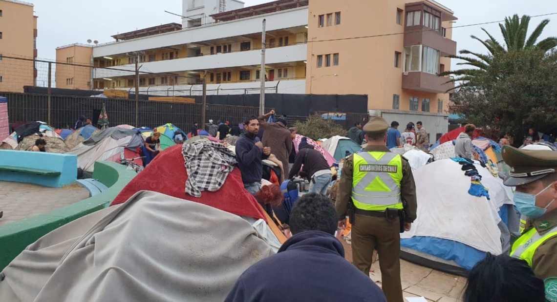 La mañana de este viernes, Carabineros y la Policía de Investigaciones procedieron al desalojo de la Plaza Brasil, en la ciudad de Iquique, ante la presencia de cientos de inmigrantes.