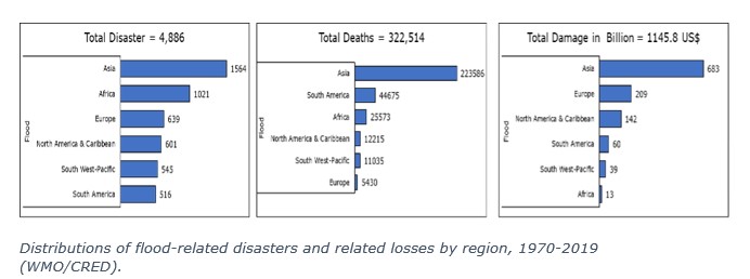 Los peligros relacionados con el agua han aumentado en frecuencia durante los últimos 20 años. Desde 2000, los desastres relacionados con las inundaciones han aumentado en un 134% en comparación con las dos décadas anteriores. La mayoría de las muertes y pérdidas económicas relacionadas con las inundaciones se registraron en Asia, donde los sistemas de alerta de extremo a extremo para las inundaciones fluviales deben fortalecerse.