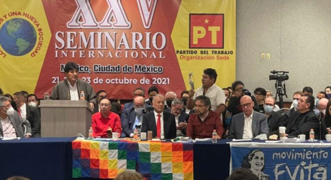 Nos dimos cita en ciudad de México para asistir presencialmente en el XXV Seminario Internacional «Los Partidos y una Nueva Sociedad», realizado los días 21 al 23 de octubre de 2021. Un evento mundial organizado anualmente por el Partido del Trabajo de México y liderado por su coordinador nacional el profesor Alberto Anaya Gutiérrez. El importante encuentro de la izquierda internacionalista tuvo como invitado de honor y a cargo de la intervención inaugural al expresidente del Estado Plurinacional de Bolivia, Evo Morales Ayma, líder y fundador del Movimiento al Socialismo- Instrumento Político de la Soberanía de los Pueblos (MAS-IPSP).