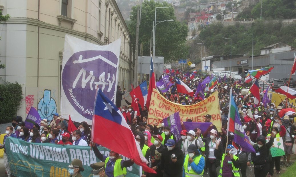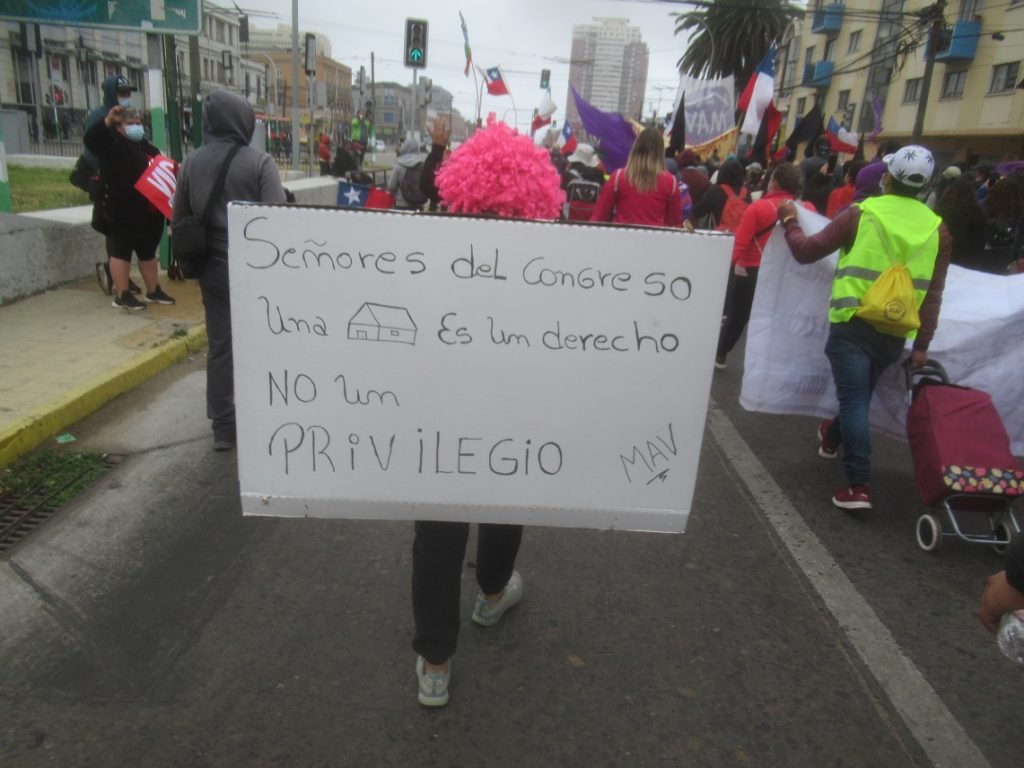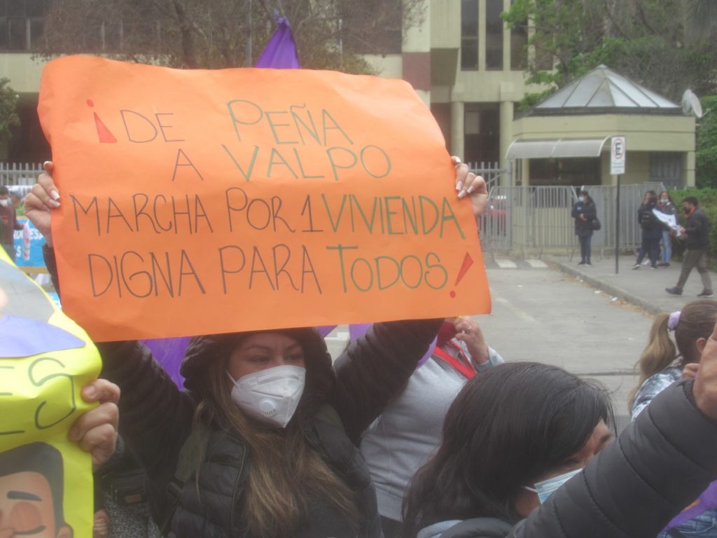 Más de mil pobladoras y pobladores de la localidad de Peñalolén marcharon desde Santiago hasta el Congreso Nacional en Valparaíso para exigir una solución habitacional digna y definitiva. Cansados de escuchar solo promesas, ya que hace cuatro años atrás se les había prometido una solución, decidieron realizar esta sacrificada movilización comenzando a caminar ayer martes en la mañana desde la capital y hoy miércoles 09 de noviembre pasadas las 11 horas entraron a la ciudad Puerto por la bajada Santos Ossa para luego continuar su marcha hacia el Congreso por Avenida Argentina y la calle Independencia. En el lienzo que encabezaba esta marcha se podía leer “POR UNA VIVIENDA PARA TO@S AHORA”.