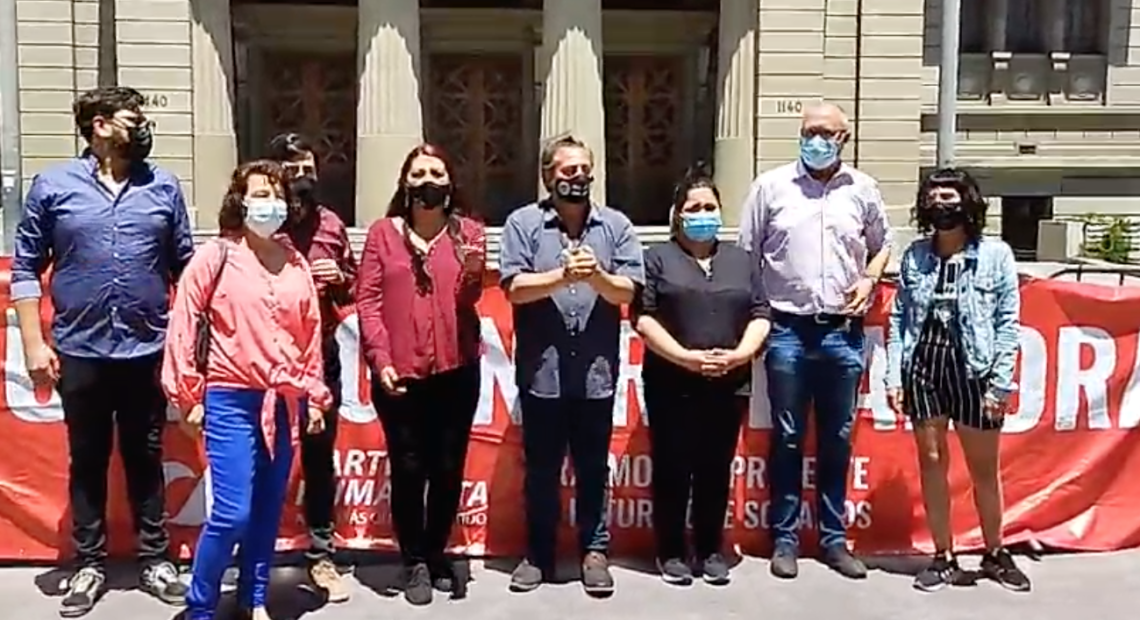 En las afueras del los tribunales de justicia protestaron las y los candidatos al parlamento por el Partido Humanista, expresando su férreo compromiso con la liberación de los presos políticos detenidos durante la revuelta, así como los presos políticos mapuche.