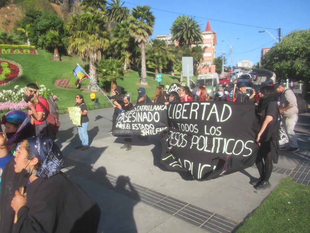 A las 17 horas pobladoras y pobladores pertenecientes a la organización Fuerza Pobladora de Chile llegaron hasta el frontis de la Municipalidad de Viña de Mar para protestar por los abusivos cobros de aseo que se están aplicando a las viviendas sociales en los sectores poblacionales, mientras por otro lado organizaciones mapuche de la V Región se congregaron a las 18 horas en el Reloj de Flores de la ciudad jardín para conmemorar el tercer aniversario del asesinato del weichafe Camilo Catrillanca a manos de agentes del Estado; exigir la libertad de los prisioneros políticos mapuche; el término de la militarización y poner fin al Estado de Emergencia en el Wallmapu.