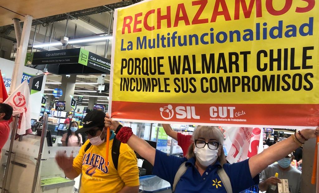 El sindicato interempresa de trabajadores de Walmart SIL, inició las movilizaciones en rechazo al plan que ha generado la empresa de supermercados para reconvertir su planta laboral, eliminando el cargo de caja, pudiendo dejar a más de 5 mil trabajadores sin empleo, “instalando un modelo precarizador del trabajo en el sector comercio” explicó Juan Moreno presidente del SIL, quien también es el primer vicepresidente de la CUT.