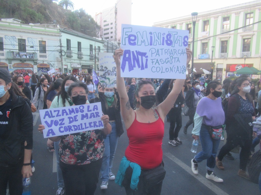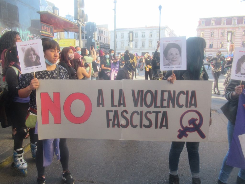 Música, bailes, cánticos, lienzos y pancartas, fueron parte de esta multicolor y alegre expresión de protesta callejera. La consigna “¡Valparaíso… Antifascista!”, que ha estado presente desde hace muchos años en las distintas movilizaciones que se realizan acá en el Puerto, resonó con fuerza a lo largo de todo el trayecto de la marcha.