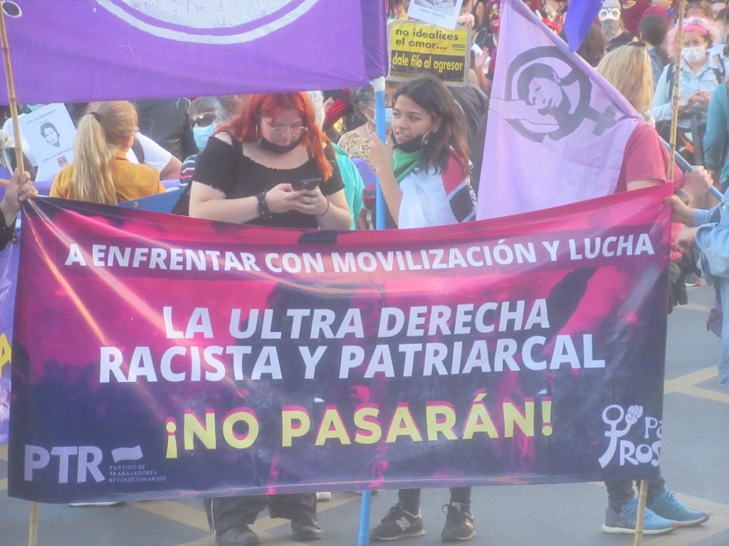 El variado contenido de los múltiples mensajes escritos sobre los diferentes lienzos y carteles expresaban claramente los planteamientos antipatriarcales y antifascistas de esta movilización.