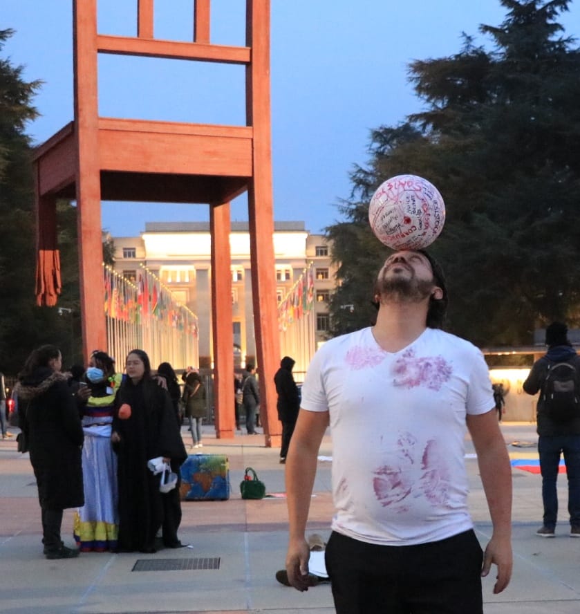 Jhosteh Silva, artista y fotógrafo colombiano en Suiza, presentó durante esta celebración a dos performance: Falsos o-puestos y Juagando con las vidas, que son un retrato de la injusticia que se ha vivido en Colombia desde tiempos anteriores hasta ahora.