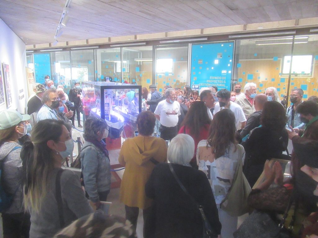 Las y los asistentes pudieron recorrer este espacio de memoria, observar la maqueta del barco Lebu, registros fotográficos y audiovisuales, arpilleras, pinturas, poleras y se hizo entrega del libro “El Siniestro Barco Lebu” que en sus 195 páginas incluye un valioso material recogido de distintas fuentes testimoniales directas y otras importantes recopilaciones gráficas y escritas.