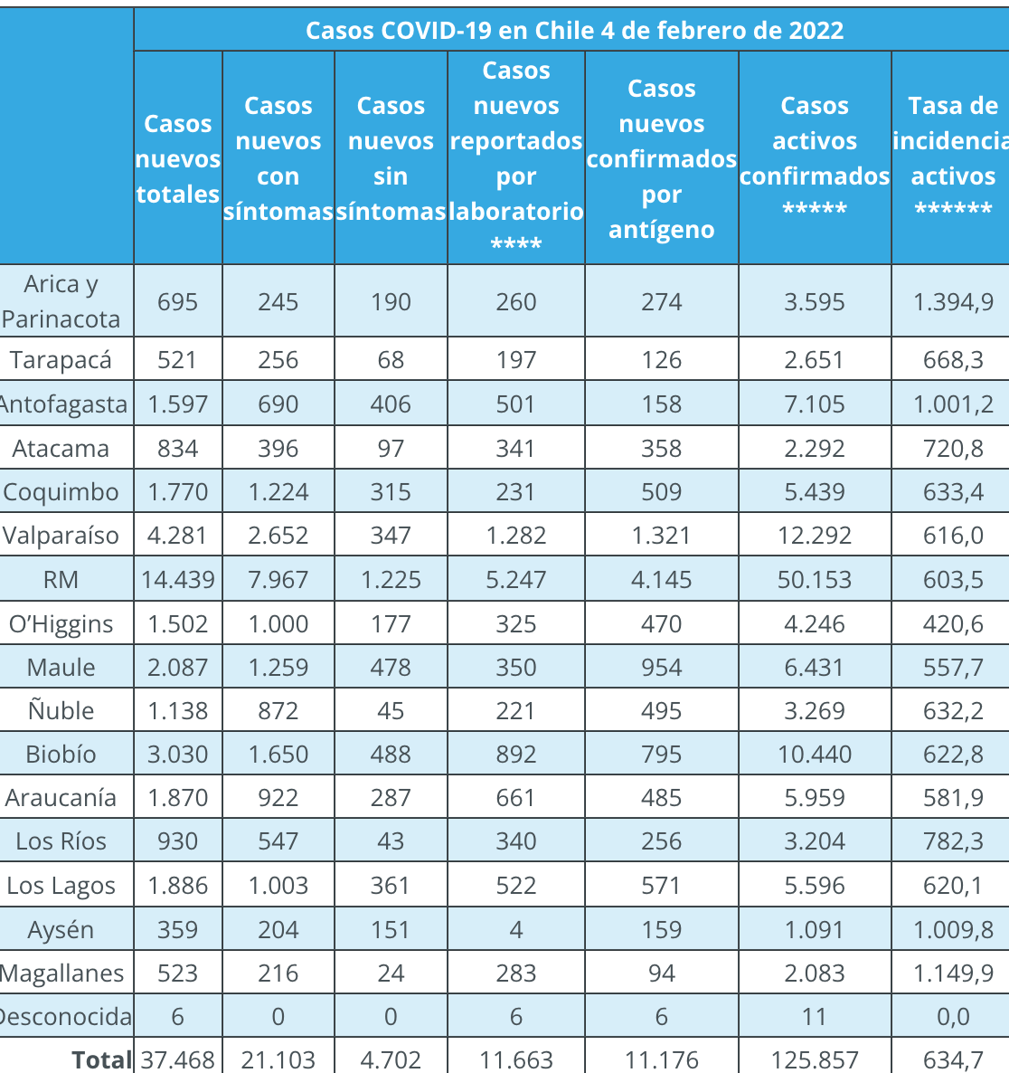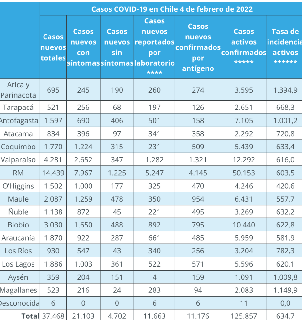 Covid-19: Reportan 37.468 casos nuevos y un total de 125.857 activos
