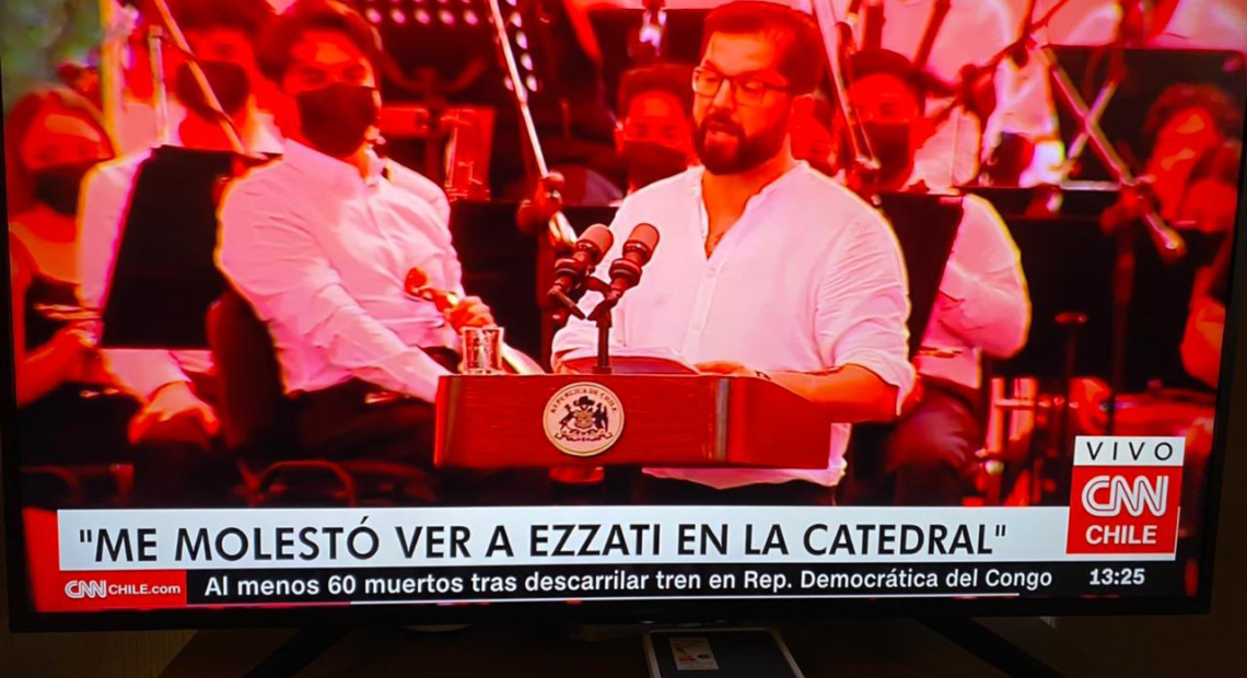 Durante la actividad de cierre del denominado “Cambio de Mando Ciudadano” en La Pintana, este domingo el Presidente Gabriel Boric manifestó que en una de las actividades realizadas ayer sábado, la Solemne Oración Ecuménica por el pueblo de Chile, “me molestó ver en la Catedral al señor (Ricardo) Ezzati y gente que ha actuado como encubridora de graves delitos contra los niños que están aquí presente”.