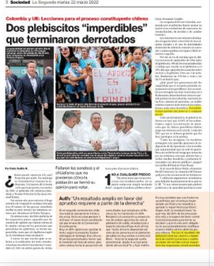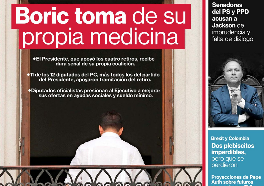Gobierno y Convención Constitucional, aún de pie pese a los golpes y desprestigios diarios. Durante el fin de semana la prensa oligárquica levantó el informe de la Comisión de Venecia para meter una cuña a través de una imaginaria tercera pregunta en la Convención. No era información verídica. El lunes los convencionales desmintieron y mandaron a leer bien el informe de esa institución europea. No había tal propuesta. Todo era una mentira.
