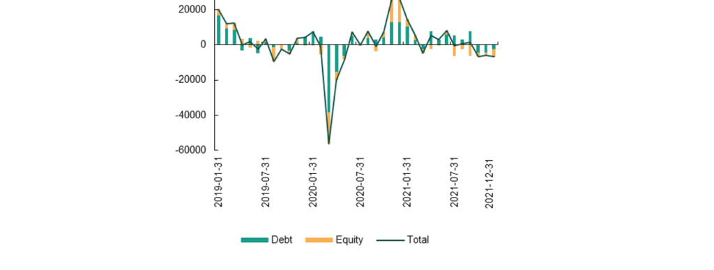 Figura 5.6.: Flujos netos de portafolio a mercados emergentes, enero de 2019 a diciembre de 2021