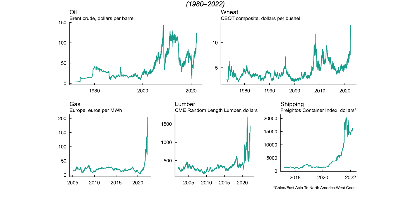 La guerra ha ejercido una mayor presión alcista en los precios internacionales de energía y productos primarios (Figura 4.1), lo que ha supuesto una carga para los presupuestos familiares y un aumento de los costes de producción, mientras que las interrupciones del comercio y los efectos de las sanciones pueden tener un impacto negativo sobre la inversión a largo plazo. La crisis geopolítica, que llega justo cuando las perturbaciones inducidas por la pandemia parecían remitir, ha supuesto un golpe para la confianza al nivel mundial. «La presión añadida por el aumento de los precios está intensificando los llamamientos a una respuesta política en las economías avanzadas, incluso en el frente fiscal, amenazando con una desaceleración del crecimiento más brusca de lo previsto», dice el Informe.