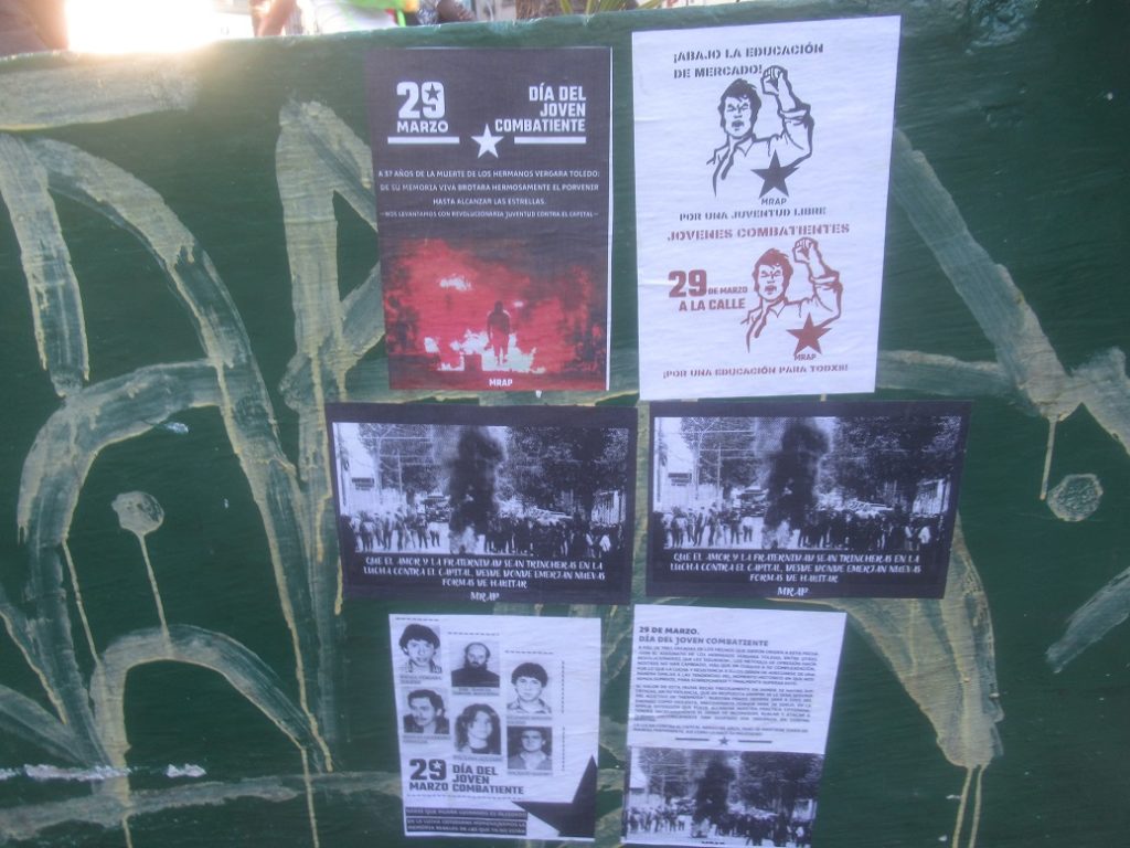 Hoy martes 29 de marzo del 2022 se realizaron movilizaciones y manifestaciones de protesta popular a lo largo de toda la jornada, en distintos sectores de Valparaíso, conmemorando el Día de la y el Joven Combatiente para recordar y rendir homenaje a las luchadoras y luchadores populares, militantes del MIR y combatientes de la resistencia popular en contra de la dictadura cívico militar MAURICIO MAIGRET BECERRA, muerto en combate el 29 de marzo de 1984 durante el levantamiento popular de Pudahuel , EDUARDO VERGARA TOLEDO Y RAFAEL VERGARA TOLEDO asesinados en Villa Francia el 29 de marzo de 1985 y PAULINA AGUIRRE TOBAR asesinada en el sector de El Arrayán en Santiago, también el día 29 de marzo de 1985.