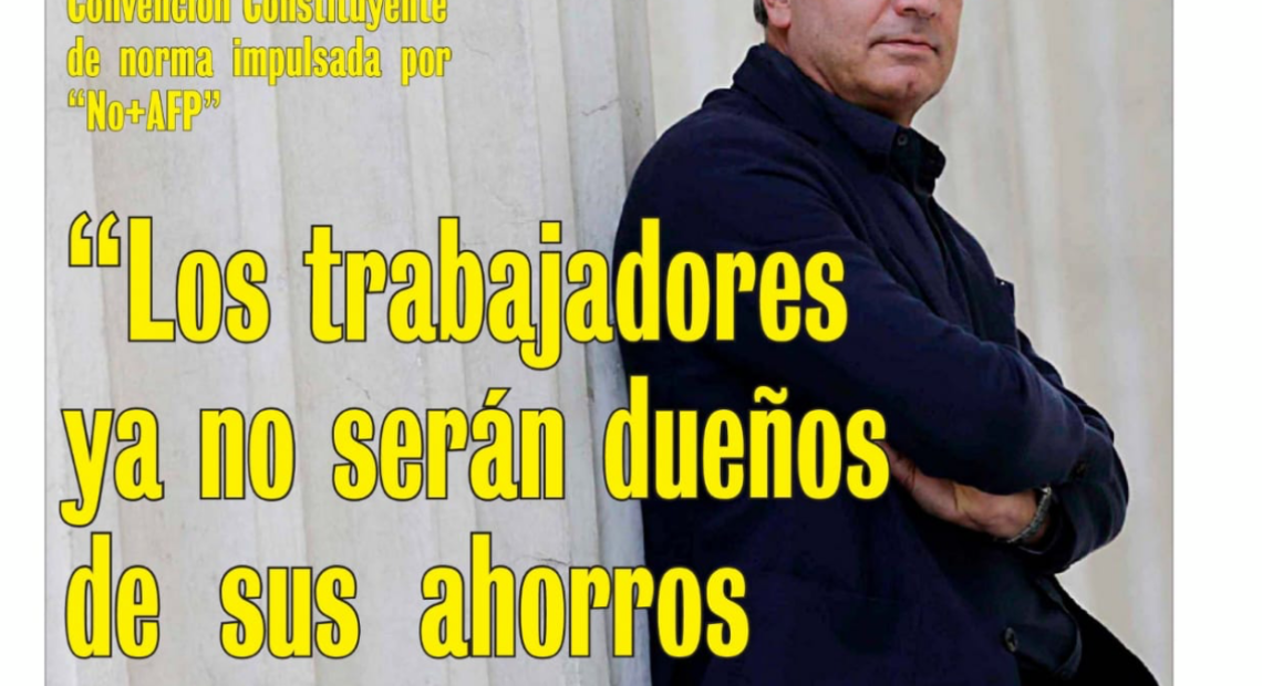 La portada de LUN de este jueves se sale de su liviana temática habitual sobre figuras de la farándula para levantar a página completa una entrevista al convencional Bernardo Fontaine Talavera. Con el título «Los trabajadores ya no serán dueños de sus ahorros previsionales», el diario más popular del consorcio editorial de los Edwards inaugura, junto a El Mercurio y La Segunda, su ingreso en la batalla política.