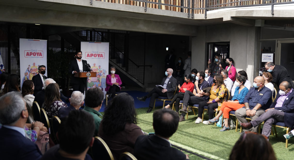 Esta mañana, el Presidente de la República, Gabriel Boric Font, se trasladó -acompañado por 14 ministras y ministros de su Gabinete- hasta la junta de vecinos de la Villa Almirante Blanco Encalada de Maipú, para dar a conocer el Plan de Recuperación Inclusiva “Chile Apoya”, el cual incluye una serie de medidas enfocadas en apoyar a distintos grupos afectados por la pandemia y por el contexto económico mundial.
