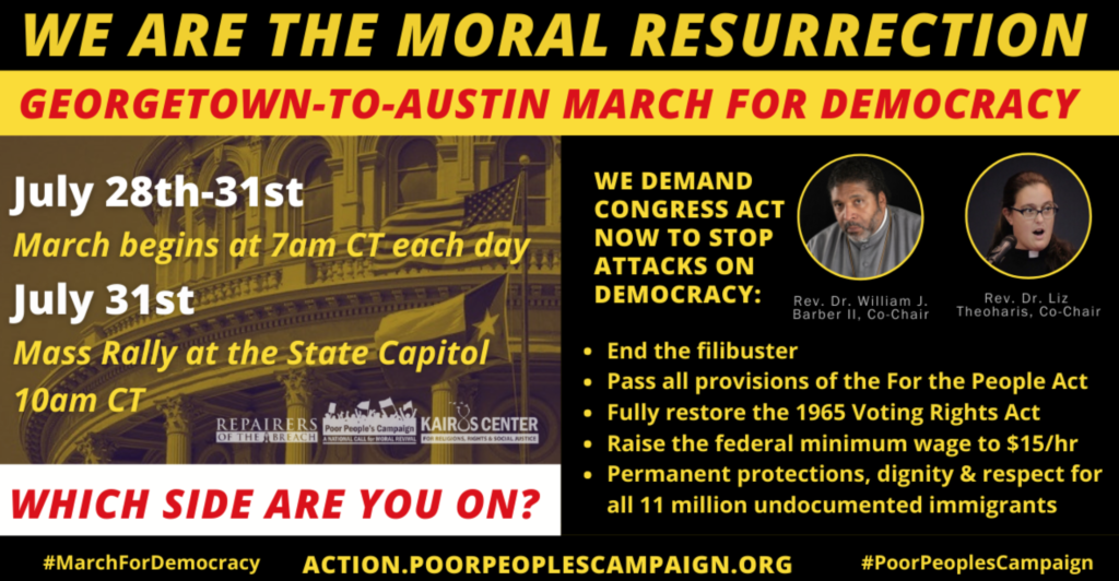 Denunció el racismo sistémico, la devastación ecológica, la economía de guerra y el militarismo, la “falsa narrativa de los cristianos nacionalistas”, y reiteró que “necesitamos una resucitación moral».