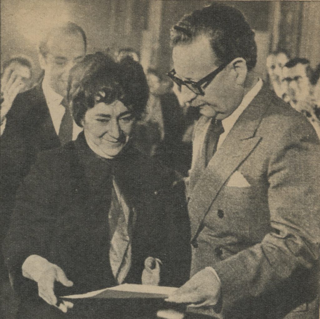 En el gobierno del presidente salvador Allende, fue nombrada de forma interina, en la cartera de Trabajo y Previsión Social entre el 2 de junio al 24 de julio de dicho año. Luego, ejerció el puesto de ministra titular del Trabajo entre el 17 de junio hasta el 2 de noviembre de 1972.