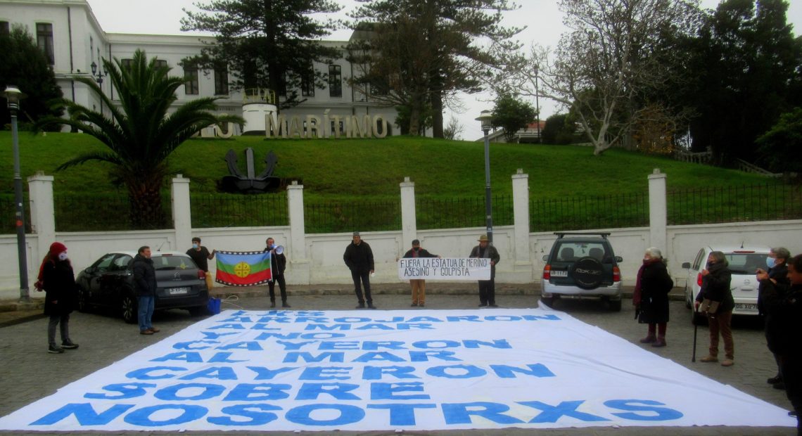 No cayeron al mar, los arrojaron al mar; funa 105 ante la estatua del almirante Merino
