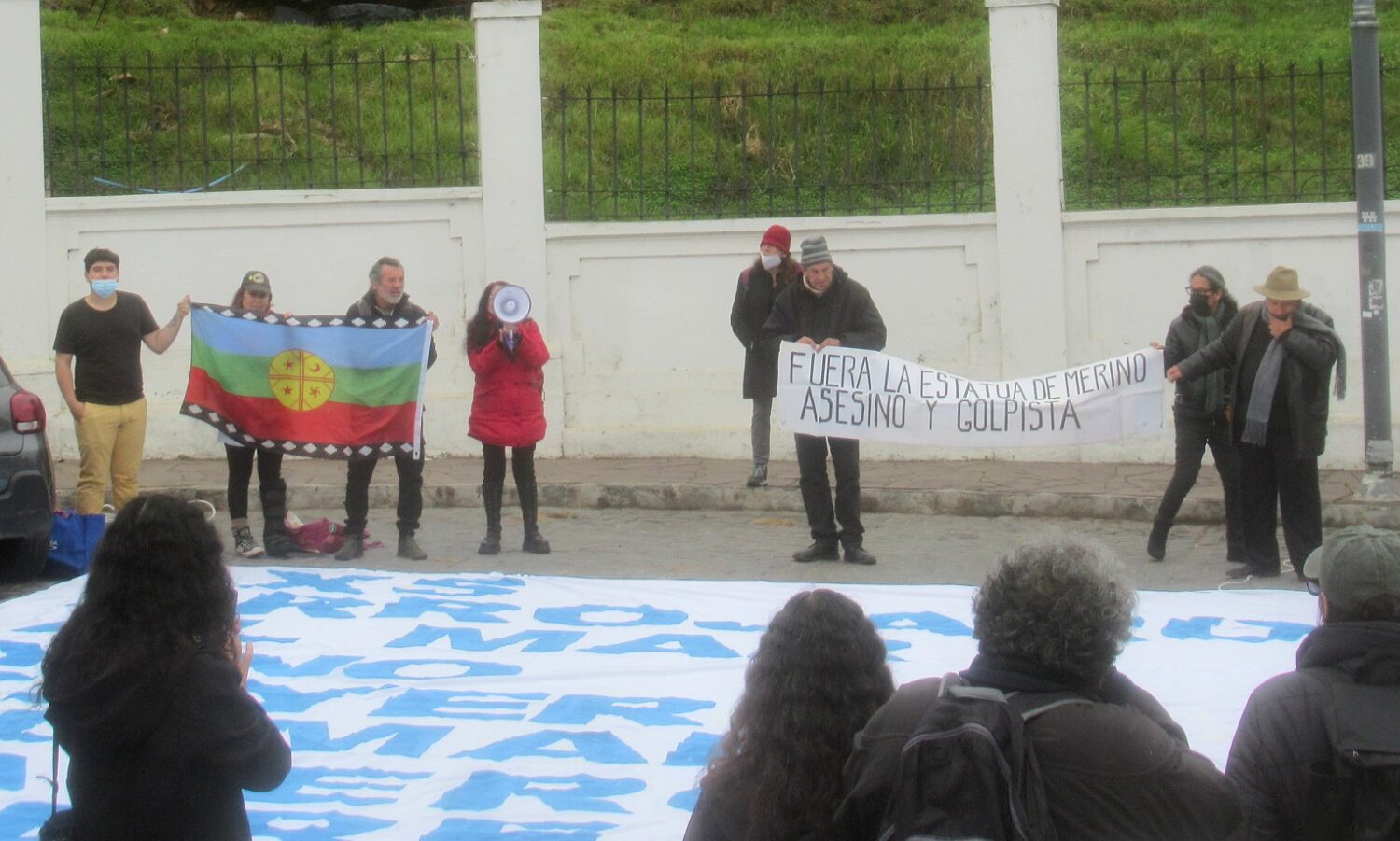 “No queremos más esta estatua del negacionismo. No podemos seguir esperando más. Hemos esperado durante todos los gobiernos anteriores, incluyendo los de Bachelet y no ha pasado nada. Ahora esperamos que el gobierno de Boric tome alguna medida concreta para sacar esta estatua, estamos esperando a la Ministra de Defensa Maya Fernández que de una vez por todas saque esta estatua de Merino, estatua que para nosotros constituye una infamia más, una afrenta más contra la memoria. Exigimos a este gobierno que le dé la orden al comandante en Jefe de la Armada, al Almirante De La Maza, que saque esta ignominiosa estatua.”