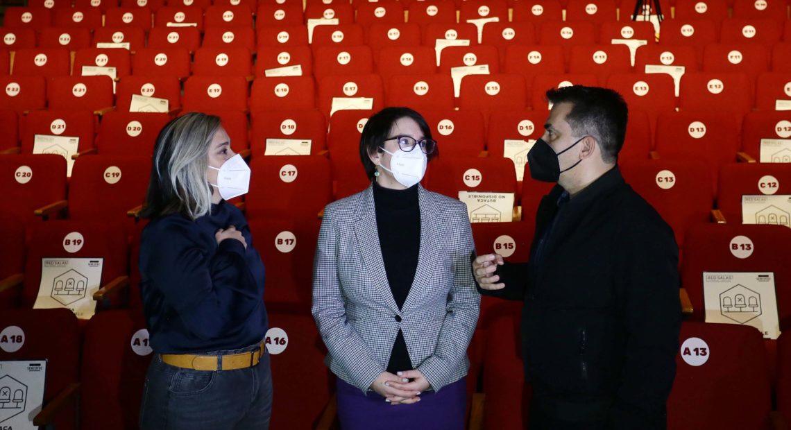 Con un recorrido por el teatro principal del Centro Cultural Matucana 100 y con la presentación de un extracto de la obra “Magallanes” de la compañía Tryo Teatro Banda, esta mañana la ministra de las Culturas, las Artes y el Patrimonio, Julieta Brodsky, junto a la subsecretaria de las Culturas, Andrea Gutiérrez y Cristóbal Gumucio, director de Matucana 100, anunció la ampliación de aforos para salas, teatros y cines en la fase de Medio impacto sanitario, del plan Seguimos cuidándonos paso a paso.