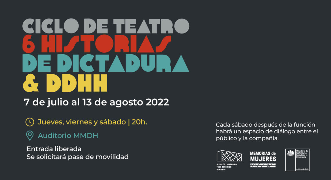Luego de dos años de pandemia, el Museo vuelve con todo al teatro presencial, con el ya tradicional ciclo 6 Historias de Dictadura y Derechos Humanos. Las seis compañías nacionales que participan en esta edición mostrarán obras con diversas propuestas narrativas y en distintos formatos, que abordan desde el exilio hasta la declaración de Estado de Sitio durante el estallido social en 2019.