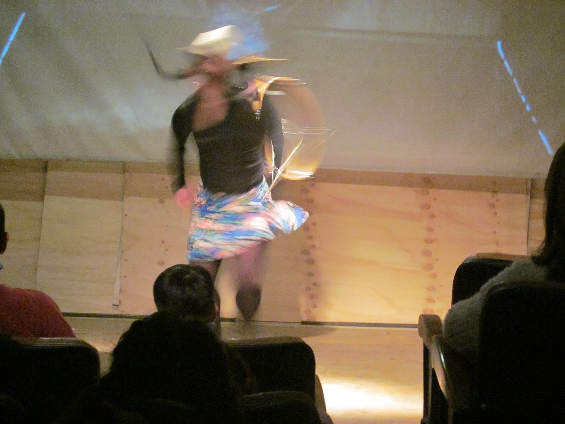 Con una demostración de este patrimonial oficio Camila Guerrero, actuando con su chinchin en la espalda, mostró de manera hermosa y alegre la forma como ella expresa la música y la danza, al compás de este popular y complejo instrumento que se percute con los pies al mismo tiempo que se va realizando el baile.