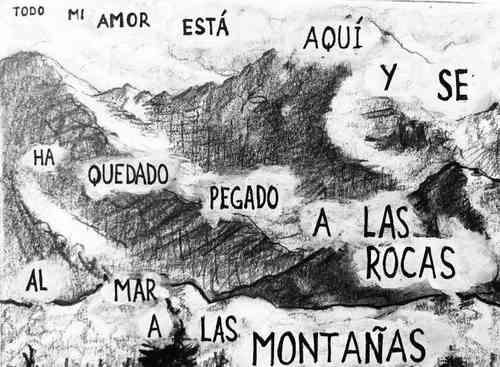 Unas 50 mil copias del verso Todo mi amor está aquí pegado a las rocas, al mar, a las montañas