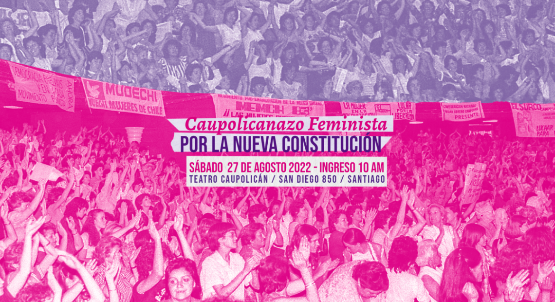 Más de 30 organizaciones feministas convocan a un hito fundamental previo al plebiscito. Se trata del Caupolicanazo Feminista por la Nueva Constitución que se realizará el sábado 27 de agosto desde las 10:00 am en el Teatro Caupolicán (San Diego 850, Santiago). Se espera la participación de más de 5000 personas.