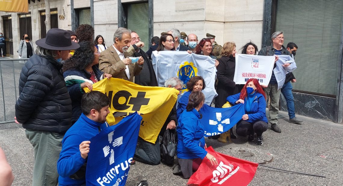 Organizaciones parte de «Chile Mejor sin TLC» se reunieron a las afueras de ministerio de Relaciones Publicas en contra del TPP-11