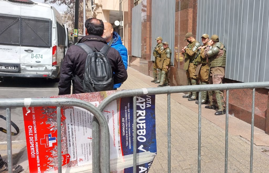 Al momento de iniciar el punto de prensa todo el perímetro que rodeaba al edificio de la Moneda se encontraba cerrado con rejas, además de la presencia de carabinero, los cuales impidan el paso de las personas a las cercanías del edificio sin entregar primero explicaciones a los oficiales.