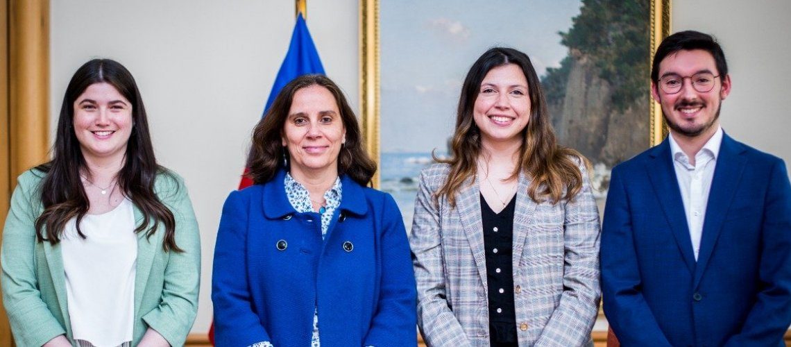 La Canciller Antonia Urrejola y el director de la División de Medio Ambiente, Cambio Climático y Océanos, Julio Cordano, se reunieron con los jóvenes seleccionados del programa “Operación COP 2022: Juventudes embajadoras por el clima”.