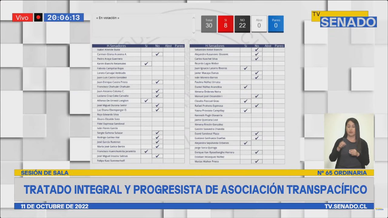 Esta tarde, el Senado aprobó el Tratado Integral y Progresista de Asociación Transpacífico (TPP11), que se encontraba en su último trámite legislativo, por lo que ahora solo debe ser ratificado por el presidente Boric, para que Chile forme parte del acuerdo multilateral.